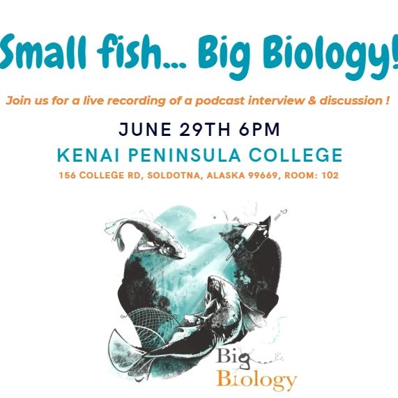 Join two team members, Alison Derry and Andrew Hendry, as they are interviewed for a broadcast of the Big Biology Podcast. The podcast co-hosts will interview their guests with a live audience on June 29 at the Kenai Peninsula College. There will be an opportunity for members of the public to ask questions afterwards.